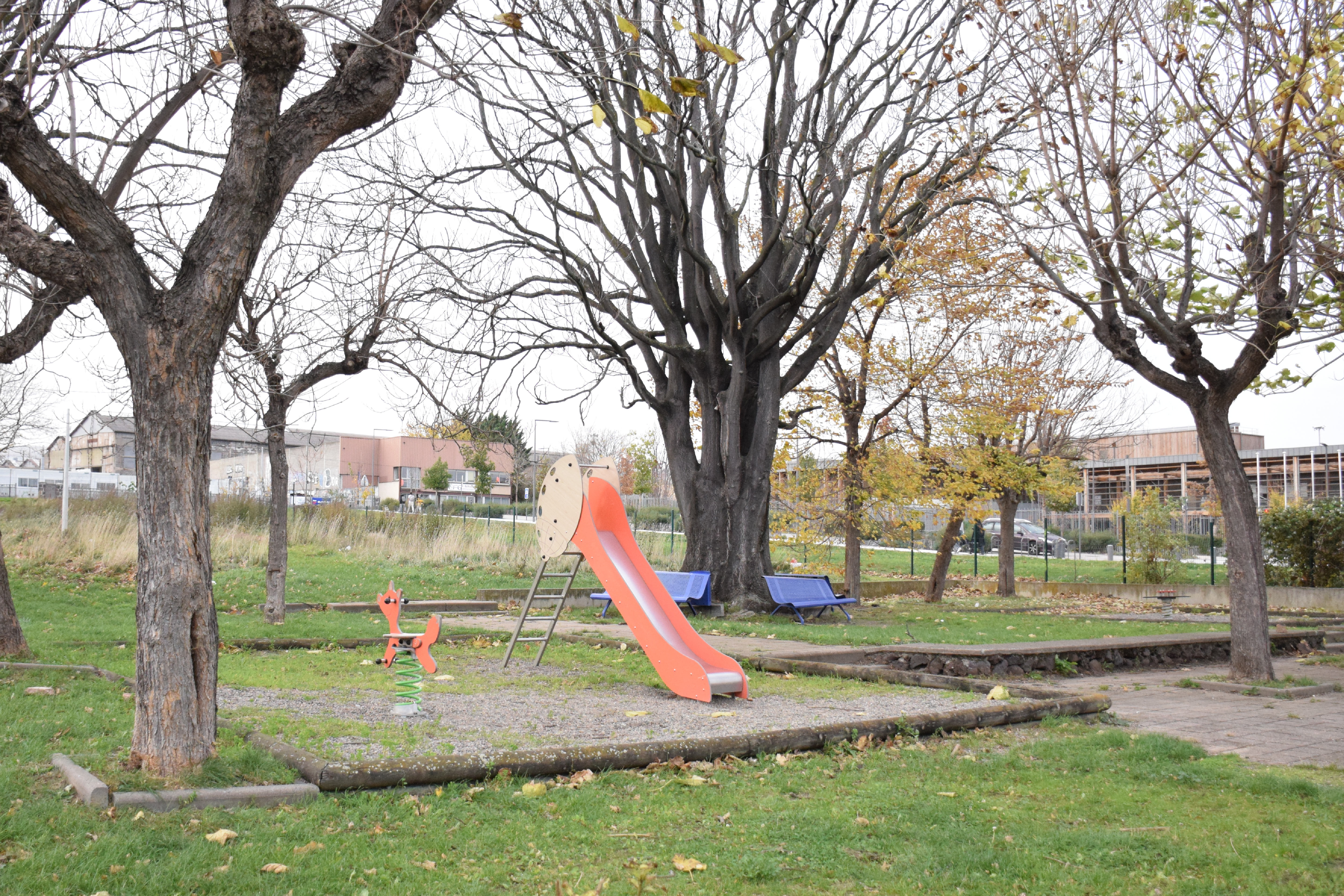 ce square s’inscrit dans un quartier en réaménagement, caractérisé par de vastes surfaces bétonnées.